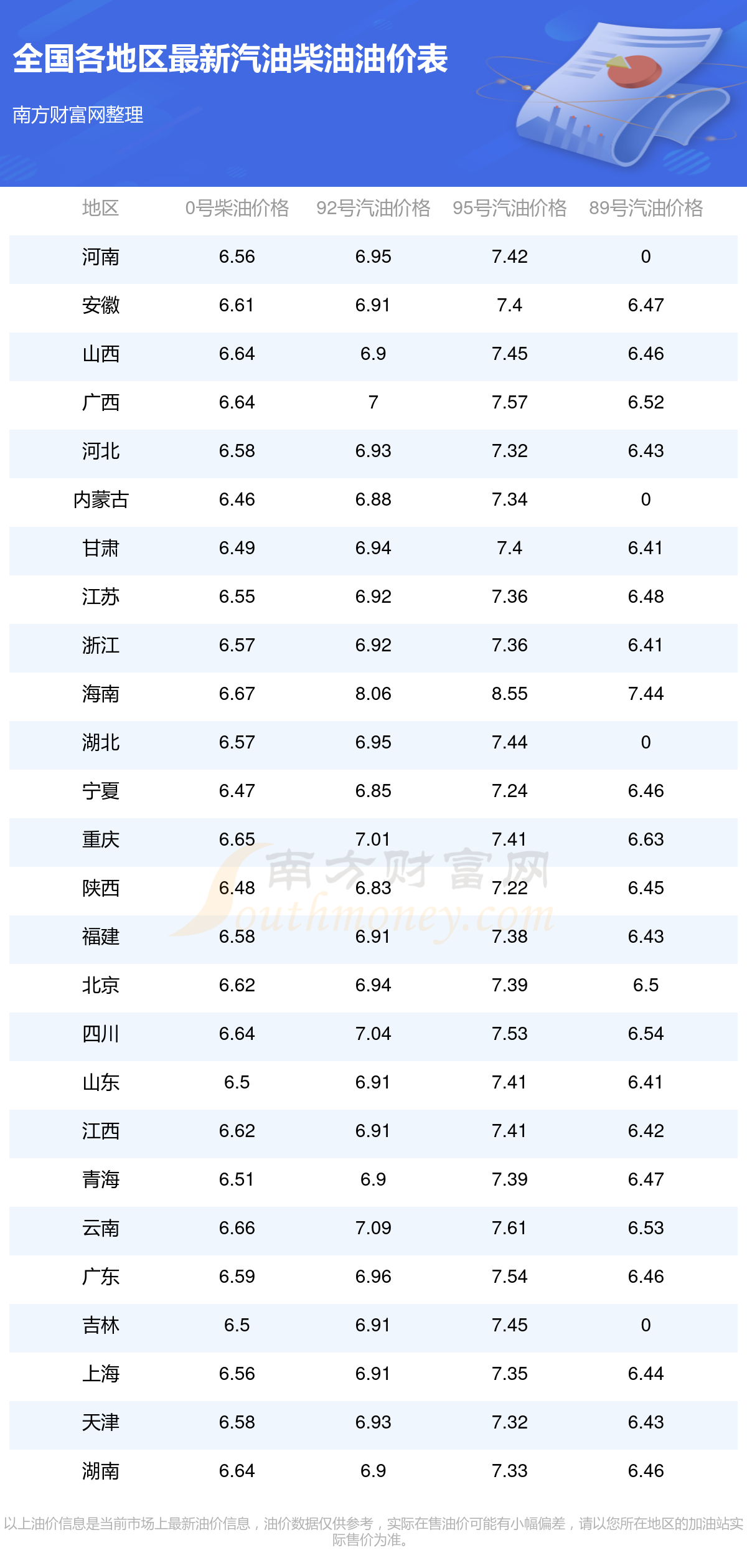 全国各地区最新油价表