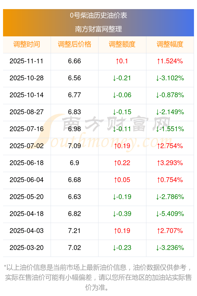 汽油价格调整最新消息:下一轮油价调整时间11月24日24时。云南汽油、柴油11月21日每升最新价格为11月11日调整后的价格,具体为:92号汽油7.09元,升了0.1元;95号汽油7.61元,升了0.11元;89号汽油6.53元,升了0.1;0号柴油6.66元,升了0.1元。