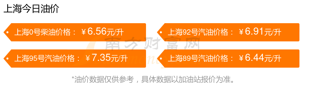 上海汽油、柴油11月21日的价格是多少钱一升?详情为:92号汽油为6.91元,上调了0.1元;95号汽油为7.35元,上调了0.11元;89号汽油为6.44元,上调了0.09元;0号柴油为6.56元,上调了0.11元,本次油价的调整时间为11月11日。上海下一轮油价调整时间11月24日24时,距离现在还有3.72天。