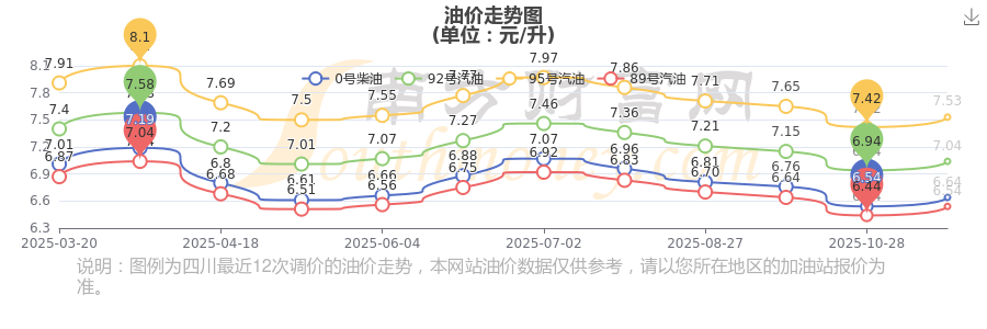 四川眉山95号汽油11月21日的最新价格:11月11日油价调整后,四川眉山95号汽油7.53元/升,相对上次调整时间10月28日的油价7.42元每升,上调了0.11元,上调1.482%。下一轮油价调整时间11月24日24时,距离现在还有3.69天。