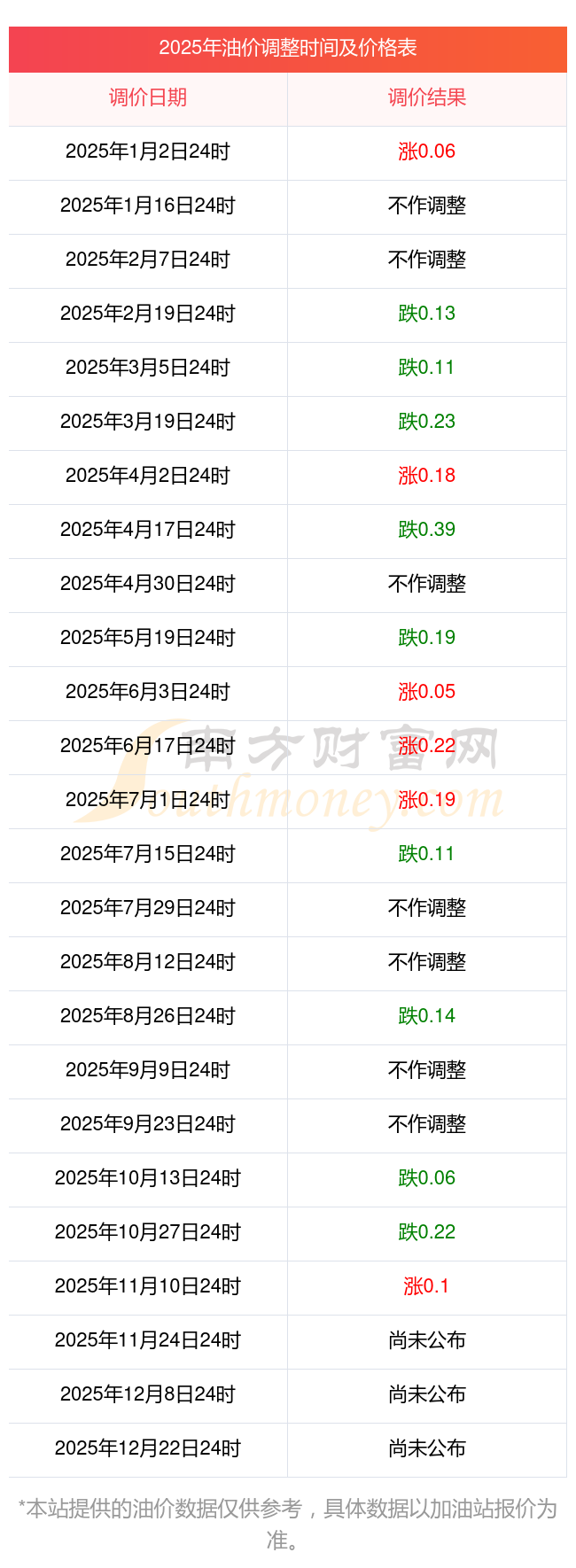 油价调整最新消息:11月21日西安汽油柴最新油价是多少?具体每升为:11月11日调整后,92号汽油为6.83元,上调了0.1元,上调幅达1.49%;95号汽油为7.22元,上调了0.11元,上调幅达1.55%;89号汽油为6.45元,上调了0.1元,上调幅达1.58%;0号柴油为6.48元,上调了0.1元,上调幅达1.57%。西安下一轮油价调整时间11月24日24时,距离现在还有3.59天。
