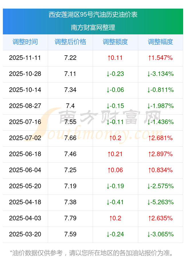 西安莲湖区95号汽油历史油价表