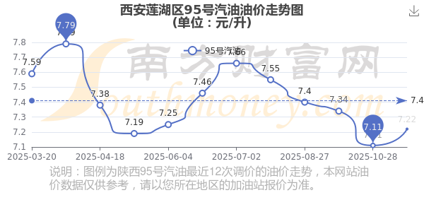 西安莲湖区95号汽油历史油价走势图