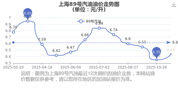 11月21日上海汽油、柴油每升的价格是11月11日调整后的价格:92号汽油为6.91元,上升了0.1元,上升幅达1.47%;95号汽油为7.35元,上升了0.11元,上升幅达1.52%;89号汽油为6.44元,上升了0.09元,上升幅达1.42%;0号柴油为6.56元,上升了0.11元,上升幅达1.71%。下一轮油价调整时间11月24日24时,距离现在还有3.57天。