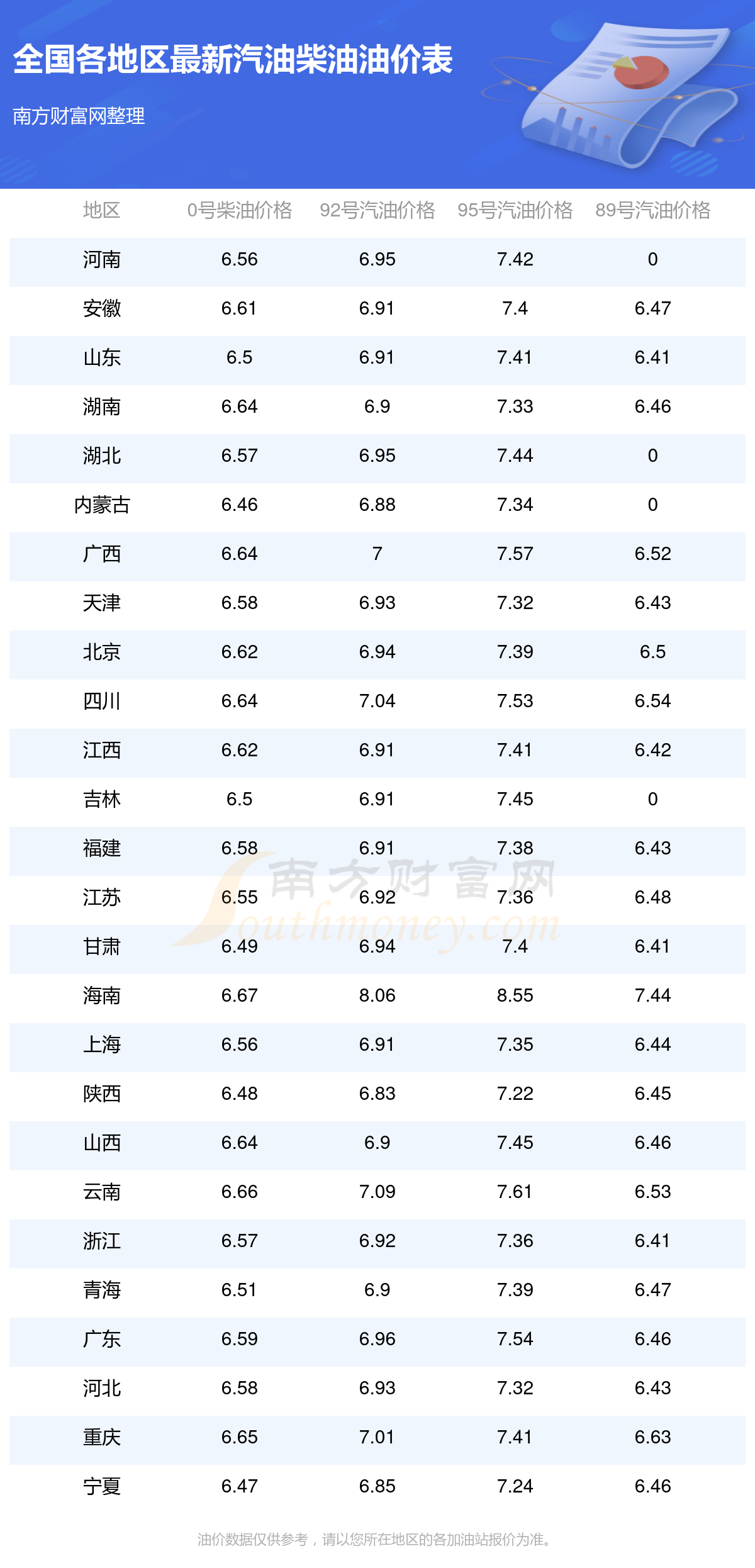以上数据仅供参考,请以您所在地区的加油站实际售价为准。开云手机web版登录入口发布此信息的目的在于传播更多信息,对使用该油价信息所导致的结果概不承担责任。