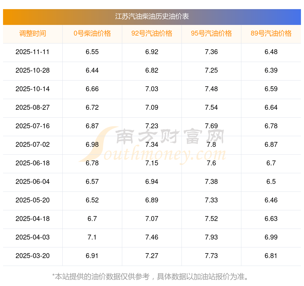 11月21日江苏汽柴油最新价格一览表