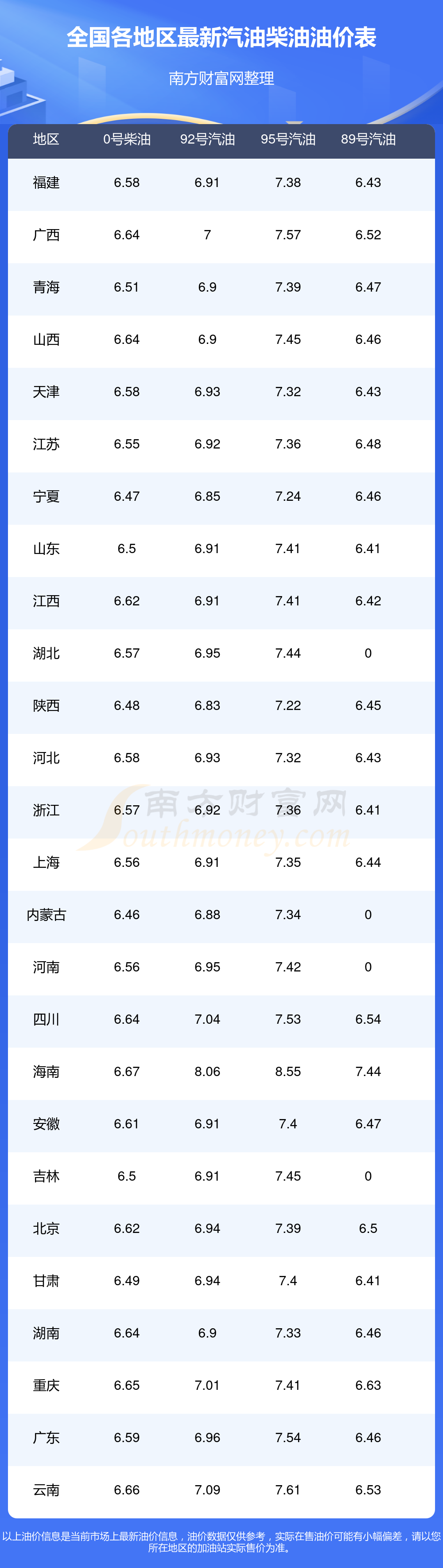本站提供的油价数据仅供参考,具体数据以加油站报价为准。