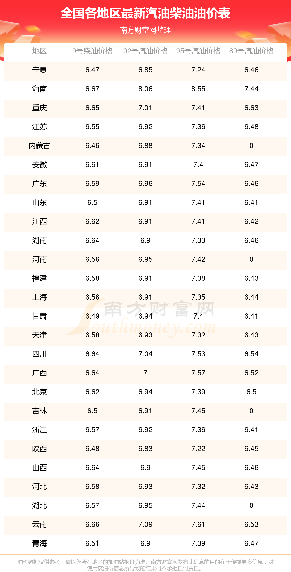 油价数据仅供参考,请以您所在地区的各加油站报价为准。