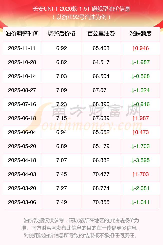 依照11月11日92号汽油最新调整价格6.92元/升来计算(以浙江为例),该车型百公里的平均油费是65.463元,依照上一轮10月28日调整价格6.82元/升来计算,百公里的平均油费是64.517元,对比上一轮多花0.946元,下一轮的油价调整时间11月24日24时。