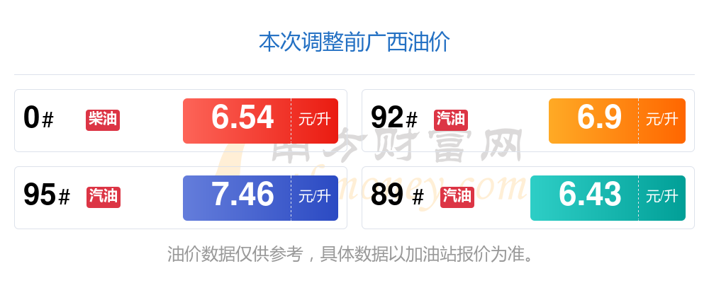 广西95号汽油油价调整表