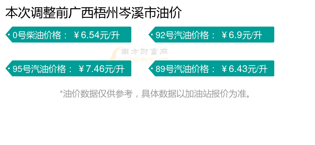 以上油价信息是当前市场上最新油价信息,油价数据仅供参考,实际在售油价可能有小幅偏差,请以您所在地区的加油站实际售价为准。