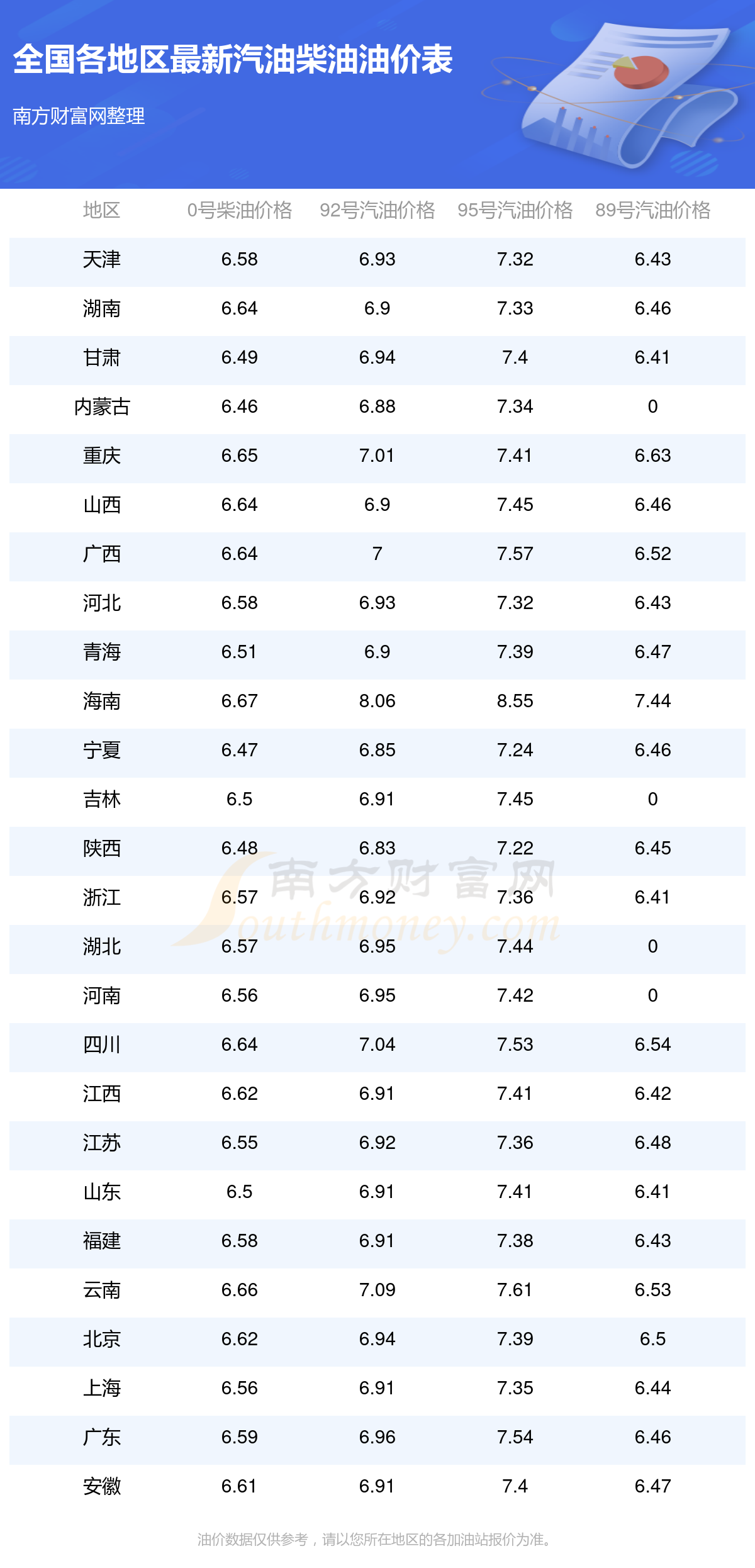 全国各地区2025年最新油价表