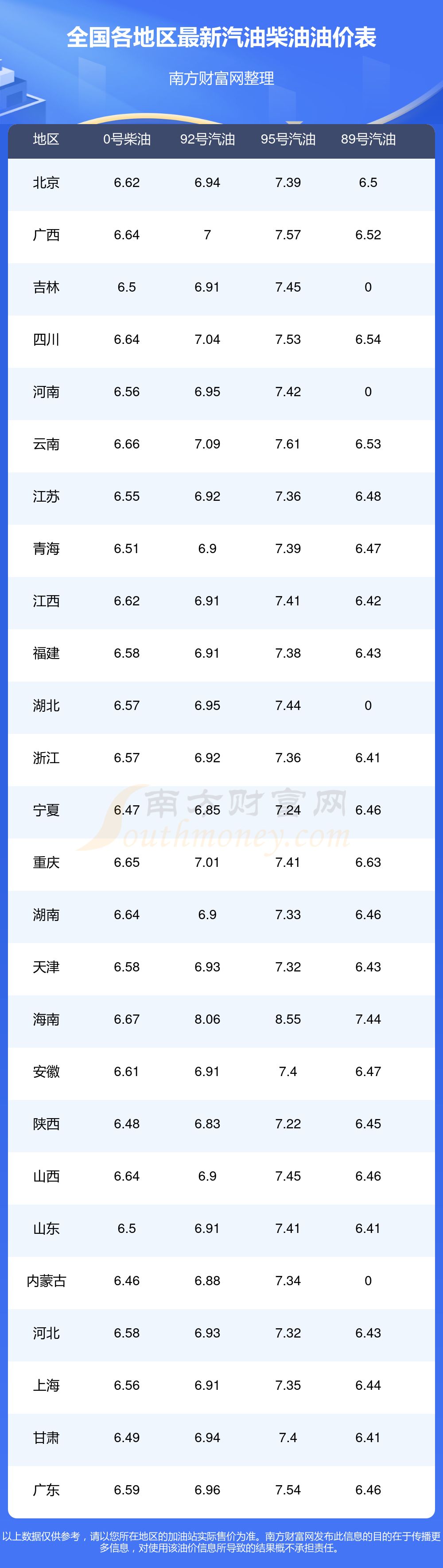 92号95号汽油多少钱一升今日油价_2025年全国92号汽油价格一览表(11-22)