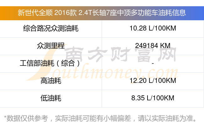数据仅供参考,一般现实油耗与测试值会有差异,请以实际油耗为准。