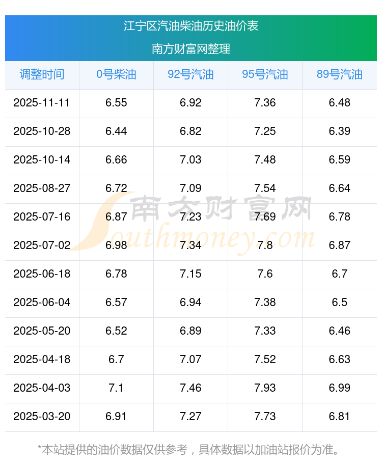 本站提供的油价数据仅供参考,具体数据以加油站报价为准。