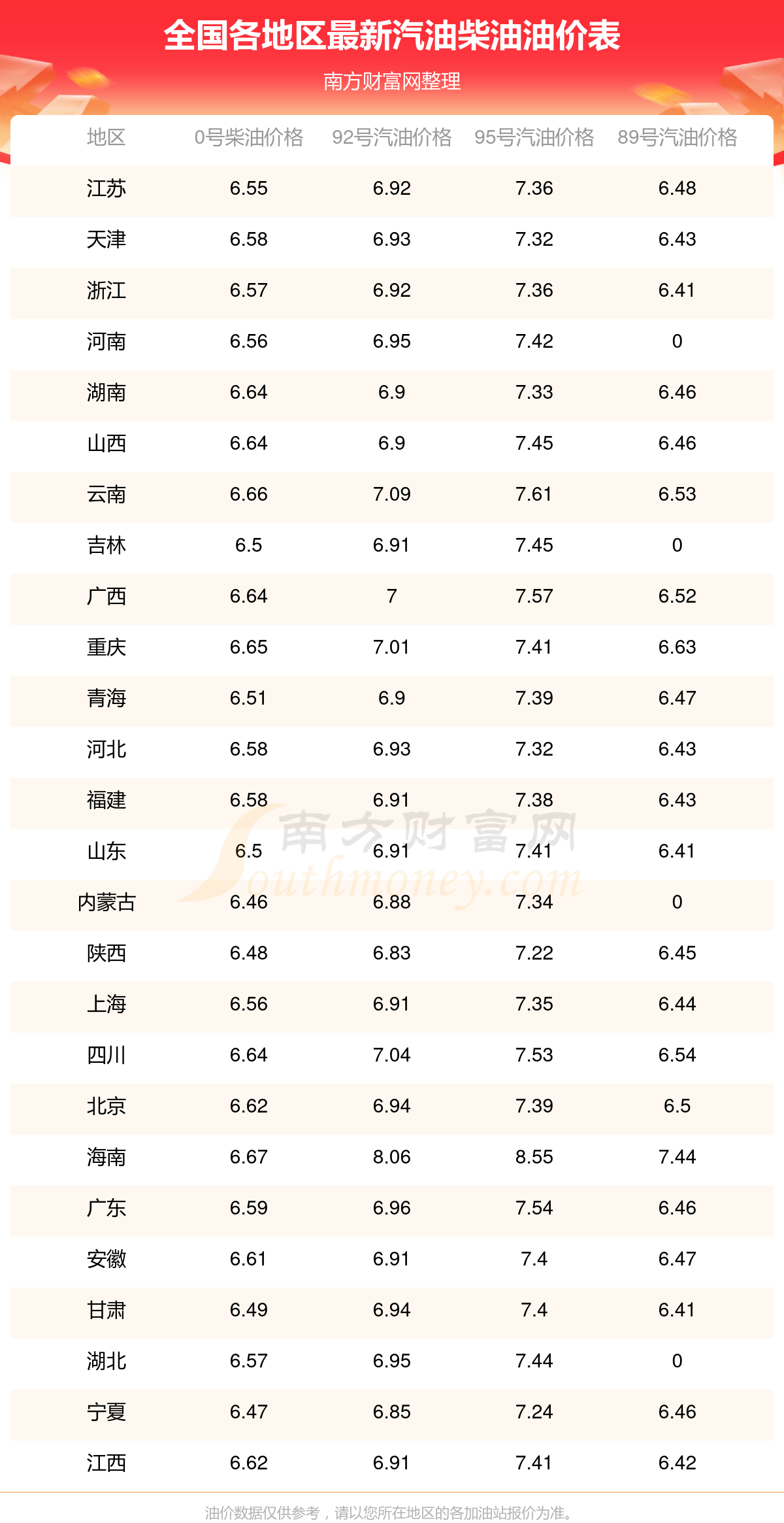 本站提供的油价数据仅供参考,具体数据以加油站报价为准。