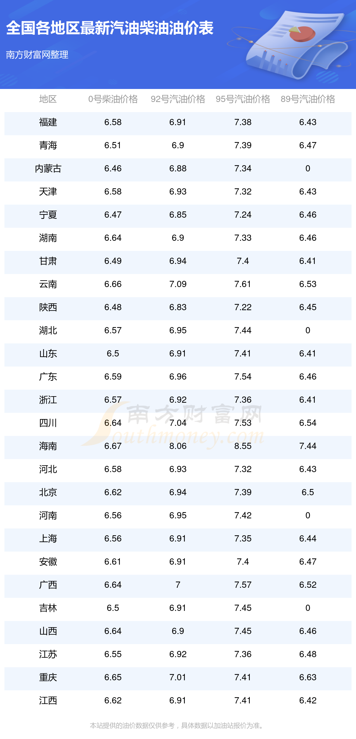 本站提供的油价数据仅供参考,具体数据以加油站报价为准。
