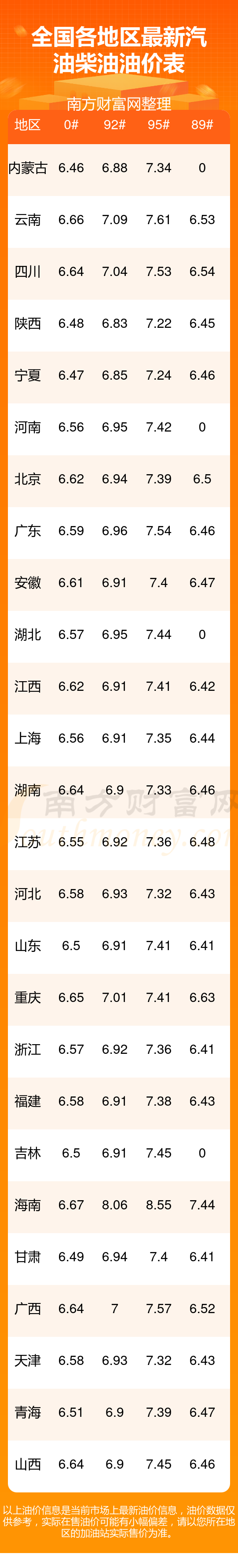 2025年11月22日全国各地汽油价格调整时间及价格一览表