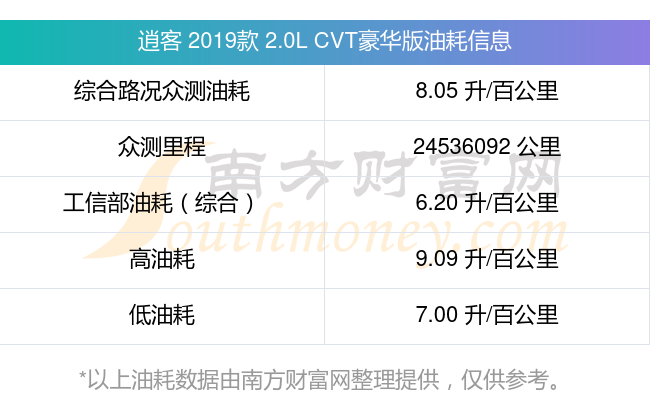 根据车主实测数据,该车型低油耗为7.00升/百公里,高油耗为9.09升/百公里,综合路况众测油耗为8.05升/百公里,工信部综合油耗为6.20升/百公里。
