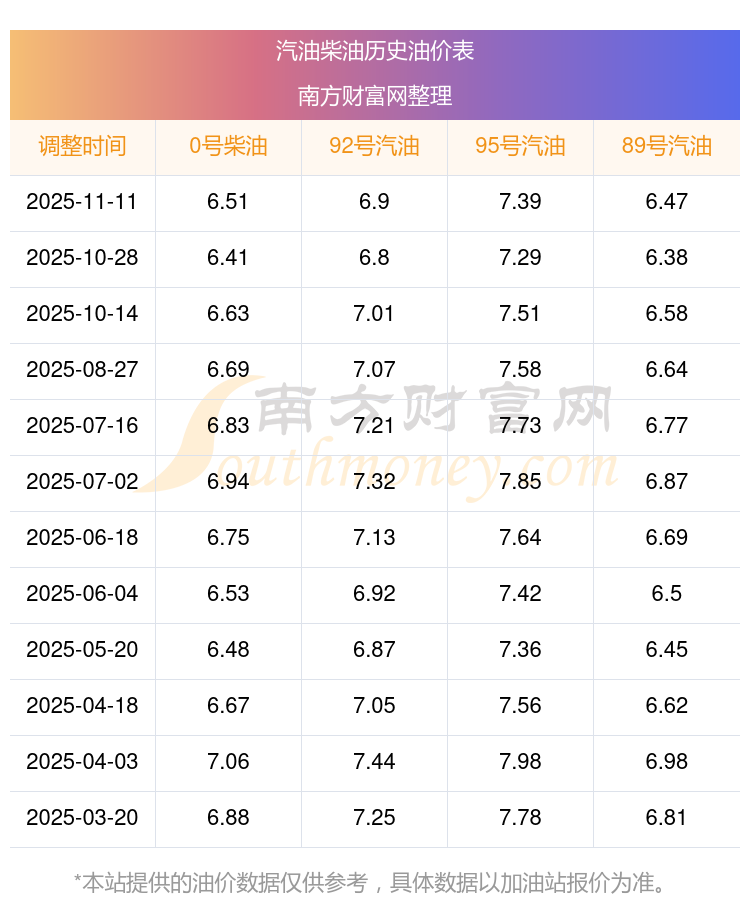 11月22日,玉树95号汽油的价格为7.39元/升,这是11月11日油价调整后的价格,对比上一轮油价调整时间10月28日的价格7.29元每升,上升了0.1元,上升幅达1.372%。下一轮油价调整时间11月24日24时,距离现在还有2.58天。