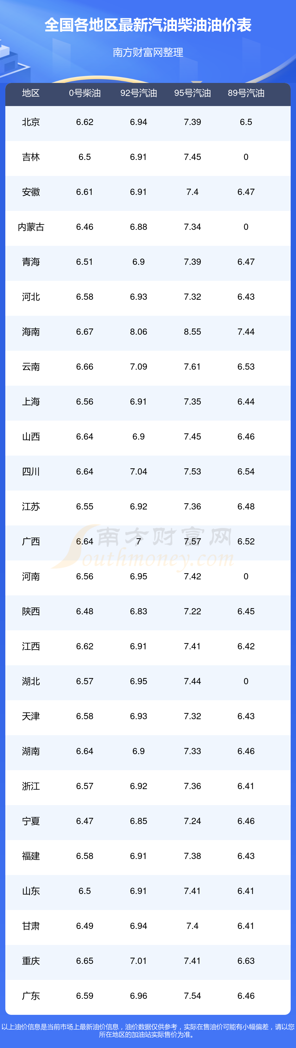 本站提供的油价数据仅供参考,具体数据以加油站报价为准。