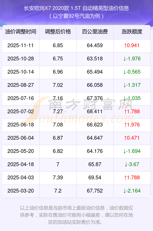 按11月11日92号汽油最新调整价格6.85元每升来计算(以宁夏为例),该车型百公里平均油费为64.459元,按上一轮10月28日调整价格6.75元每升来计算,百公里平均油费为63.518元,对比上一轮多花0.941元,下一轮油价调整时间为11月24日24时。