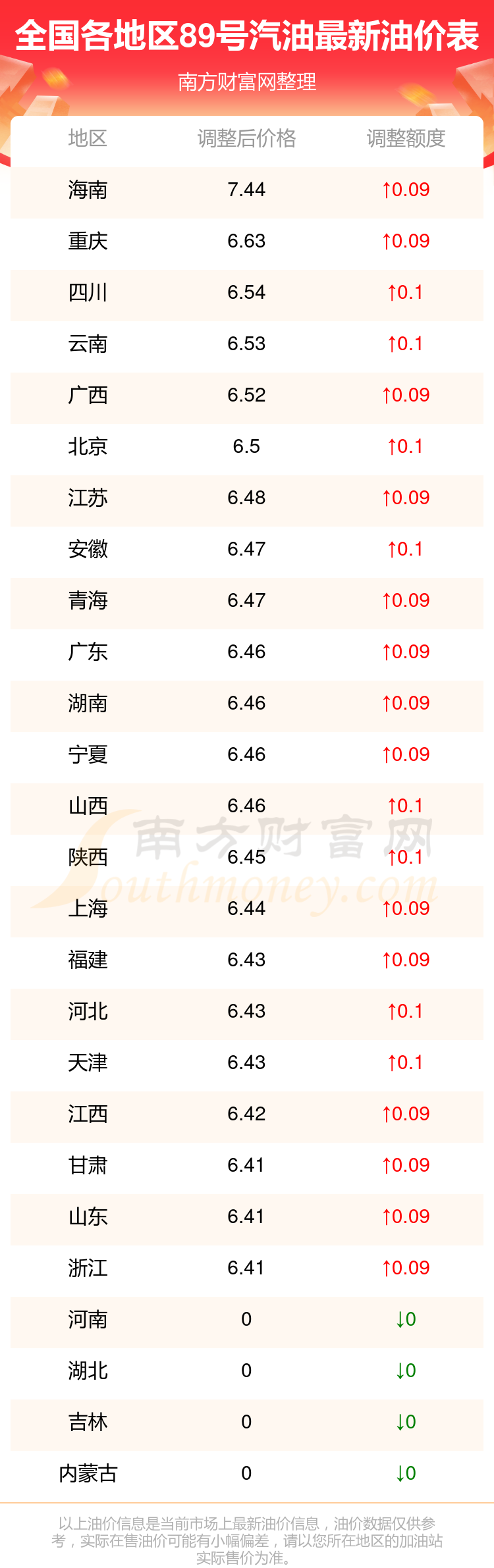以上数据仅供参考,请以您所在地区的加油站实际售价为准。开云手机web版登录入口发布此信息的目的在于传播更多信息,对使用该油价信息所导致的结果概不承担责任。