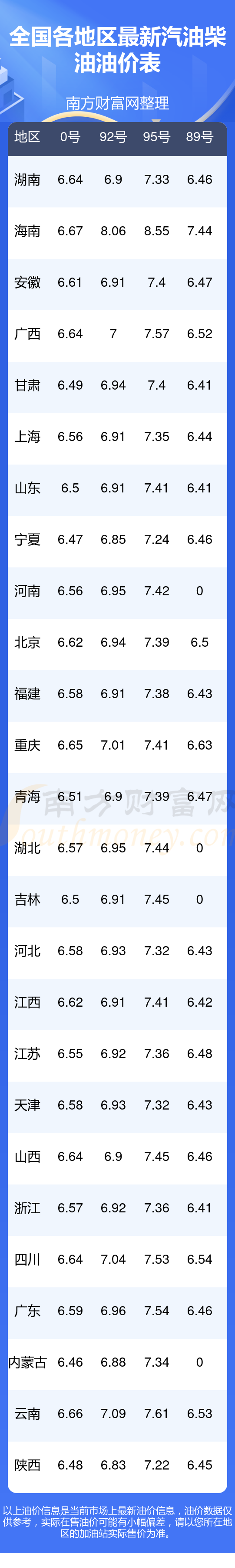 油价数据仅供参考,请以您所在地区的各加油站报价为准。