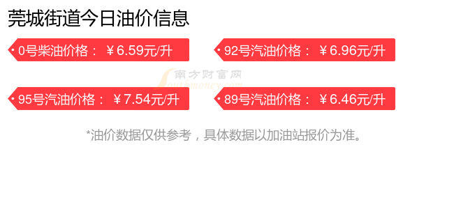 莞城街道汽油、柴油11月22日每升的价格是多少?具体为:92号汽油为6.96元,上升了0.1元;95号汽油为7.54元,上升了0.11元;89号汽油为6.46元,上升了0.09元;0号柴油为6.59元,上升了0.1元,本轮油价的调整时间为11月11日。