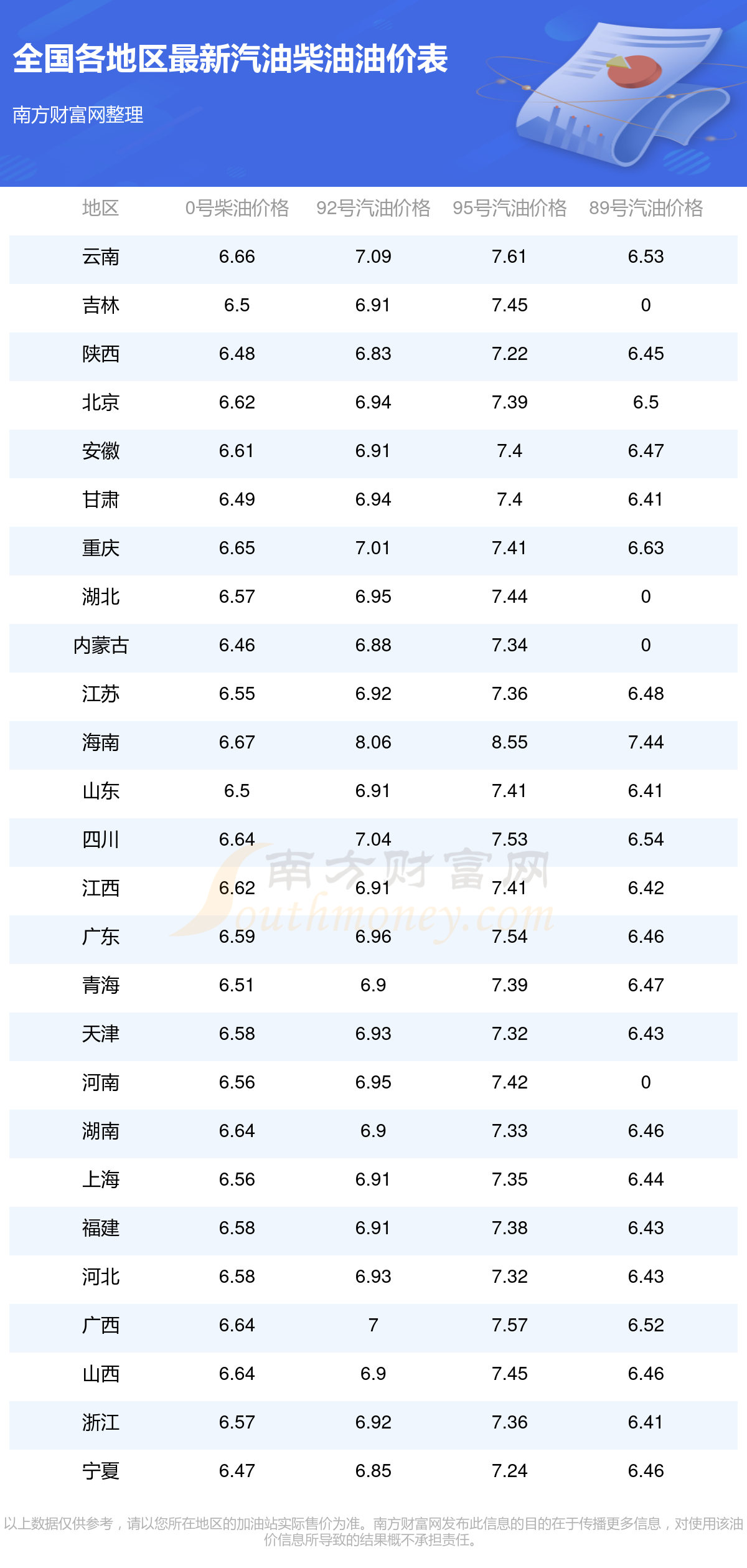 全国各地区最新油价表