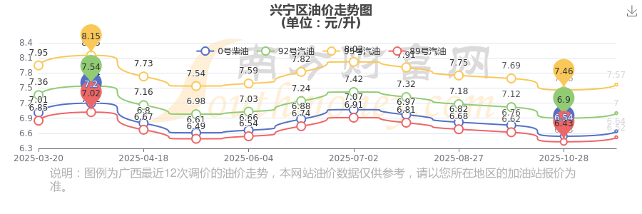 兴宁区11月22日95号汽油历史油价调整走势图