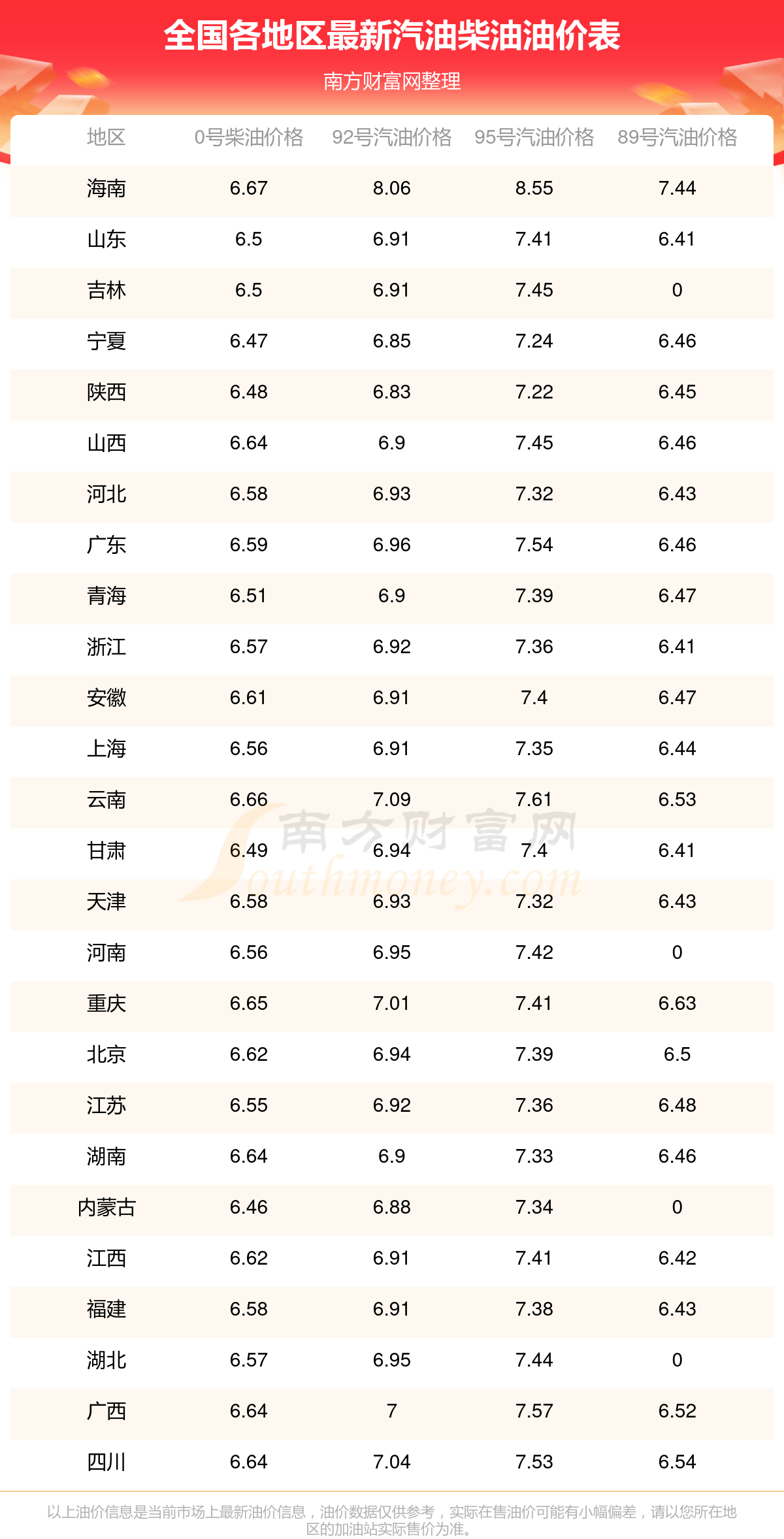 2025年11月22日全国各地油价调整时间表