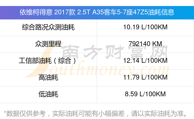 根据多位车主实测得出数据,该车型低油耗为8.59升/百公里,高油耗为11.79升/百公里,综合路况众测油耗为10.19升/百公里,工信部综合油耗为12.14升/百公里。