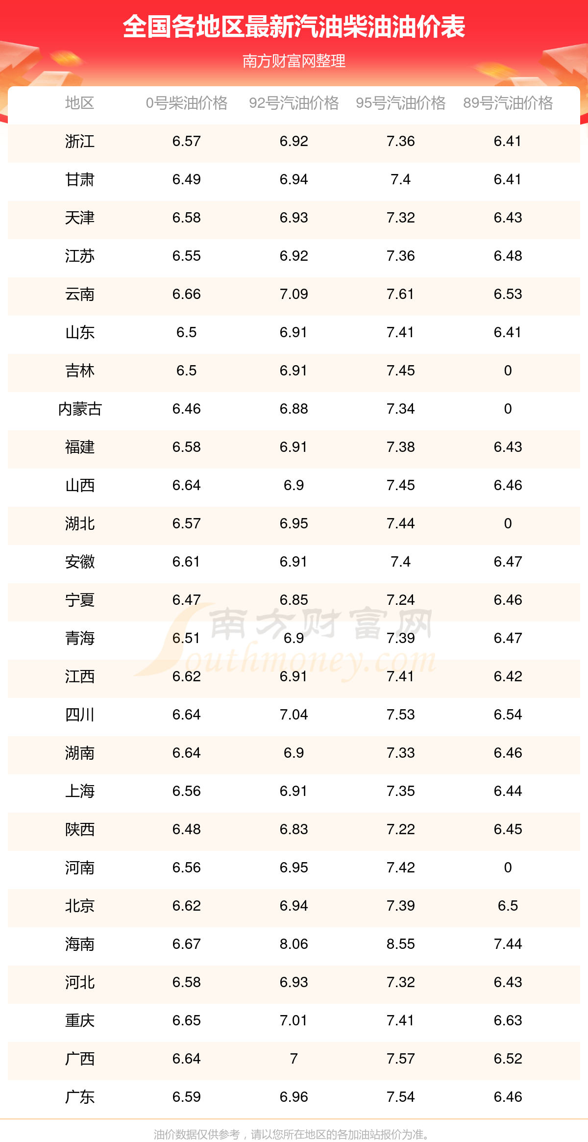 本站提供的油价数据仅供参考,具体数据以加油站报价为准。