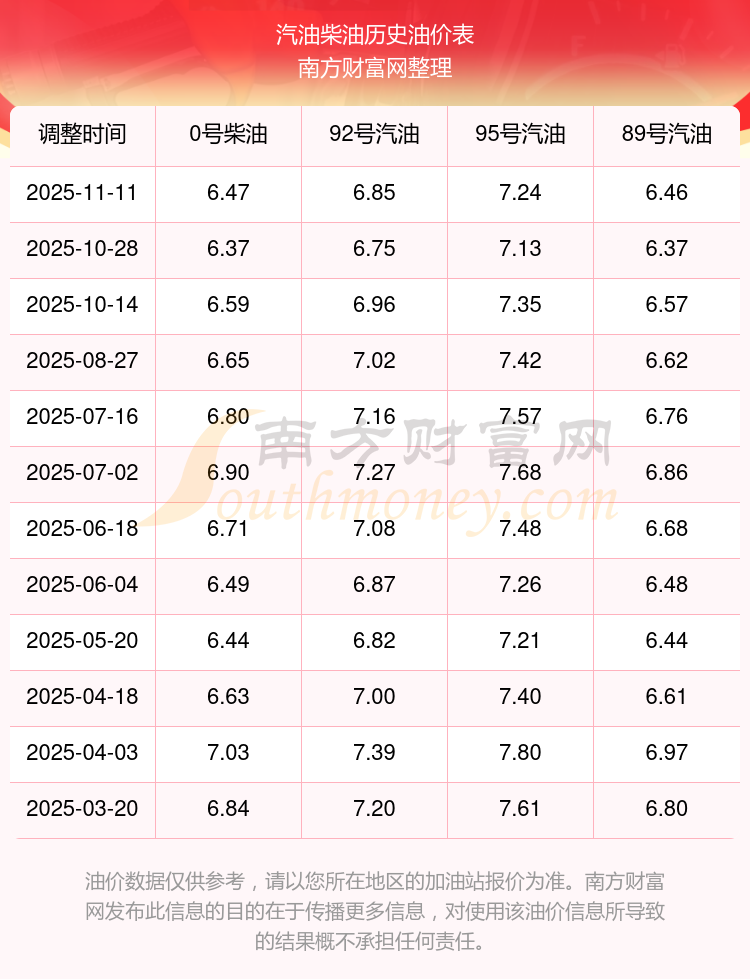 11月22日银川95号汽油的价格为7.24元每升,本次调整时间为11月11日,相对上次调整时间10月28日的油价7.13元每升,上升了0.11元,上升幅达1.543%。下一轮油价调整时间11月24日24时,距离现在还有2.51天。