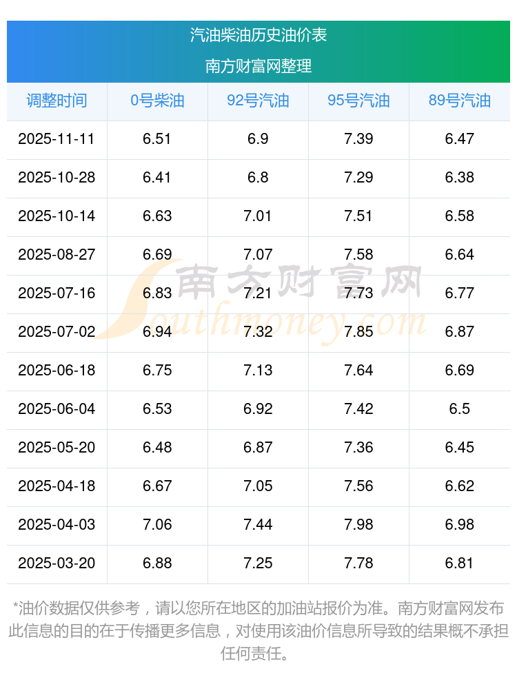 11月22日果洛92号汽油的价格为6.9元/升,本轮油价的调整时间为11月11日,相对上一轮油价调整时间10月28日的价格6.8元/升,上升了0.1元,上升幅达1.471%。下一轮油价调整时间11月24日24时,距离现在还有2.51天。