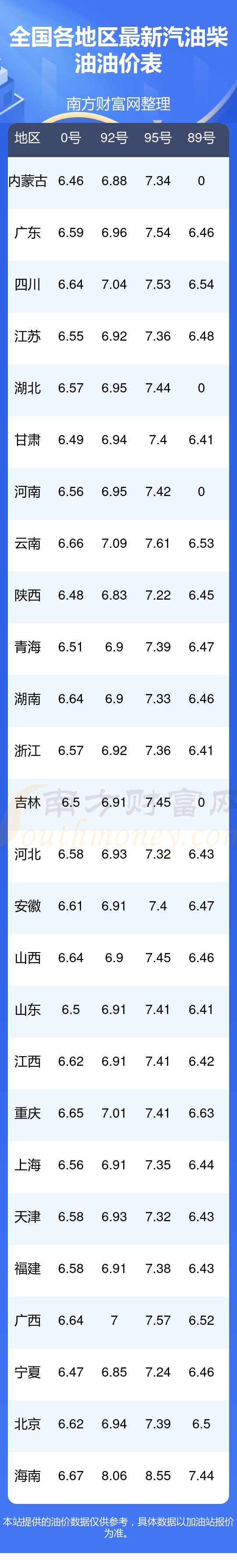 2025年11月22日全国各地汽油价格调整时间及价格一览表