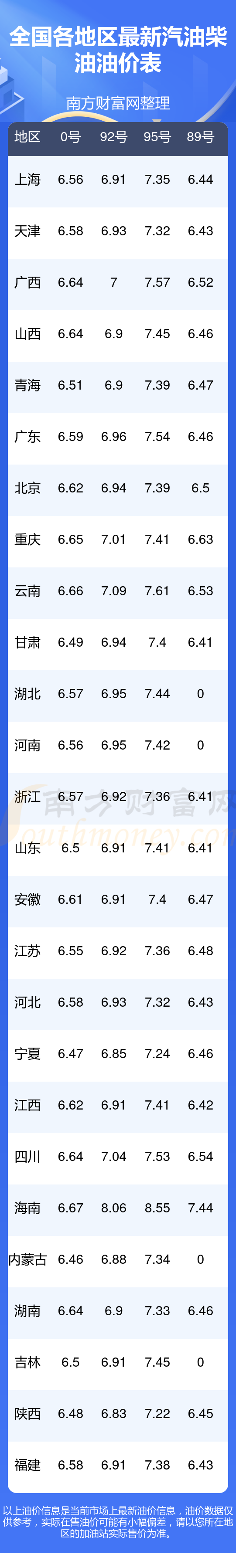 本次油价的调整时间为11月11日,调整后全国油价详情为:92号汽油平均价格为7元每升,其中,最低的是陕西,6.83元每升,最高的是海南,8.06元每升。95号汽油平均价格为7元每升,其中,最低的是陕西,7.22元每升,最高的是海南,8.55元每升。0号柴油平均价格为:7元每升,其中,最低的是内蒙古,6.46元每升,最高的是海南,6.67元每升。89号汽油平均价格为7元每升,其中,最低的是浙江,6.41元每升,最高的是海南,7.44元每升。,下一轮油价调整时间11月24日24时,距离现在还有2.5天。