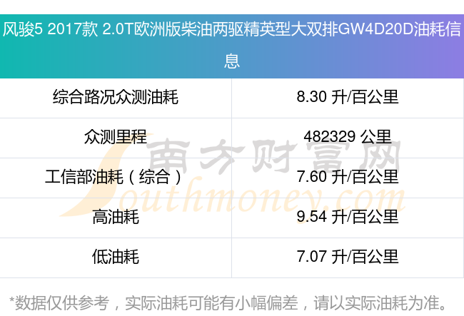根据车主实测数据,该车型低油耗为7.07升/百公里,高油耗为9.54升/百公里,综合路况众测油耗为8.30升/百公里,工信部综合油耗为7.60升/百公里。