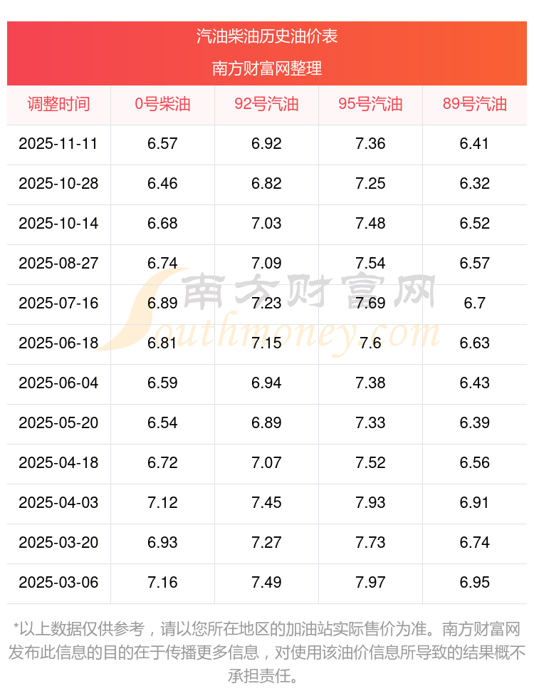 11月22日浙江舟山92号汽油的价格是11月11日调整后的价格,具体为6.92元/升,对比上次调整时间10月28日的油价6.82元每升,升了0.1元,升幅达1.466%。下一轮油价调整时间11月24日24时,距离现在还有2.47天。
