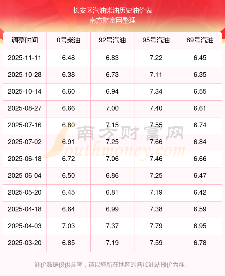 长安区历史油价表