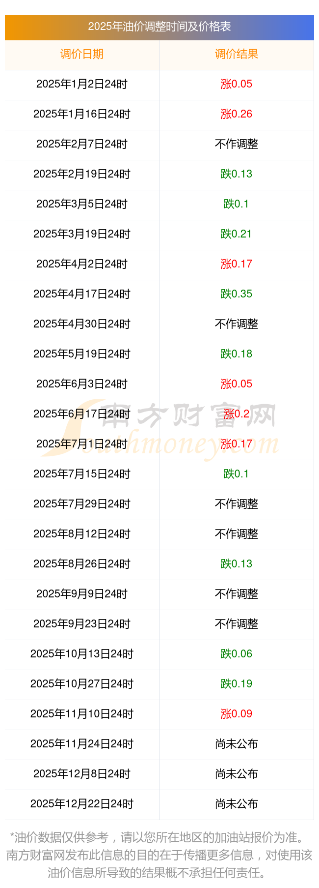 2025年青秀区11月22日油价调整时间表