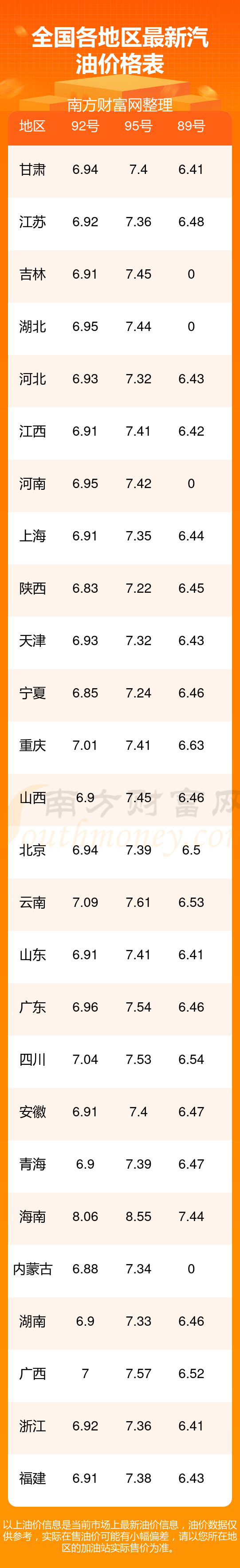 按11月11日92号汽油最新调整价格6.95元每升来计算(以河南为例),该车型百公里平均油费为53.098元,按上一轮10月28日调整价格6.85元每升来计算,百公里平均油费为52.334元,对比上一轮多花0.764元,下一轮油价调整时间为11月24日24时。