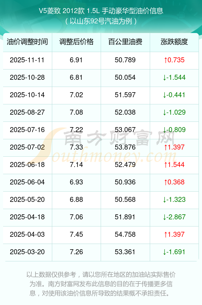 依照11月11日92号汽油最新调整价格6.91元/升来计算(以山东为例),该车型百公里的平均油费是50.789元,依照上一轮10月28日调整价格6.81元/升来计算,百公里的平均油费是50.054元,对比上一轮多花0.735元,下一轮的油价调整时间11月24日24时。