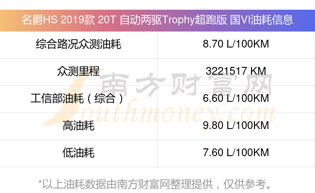 根据多位车主实测得出数据,该车型低油耗为7.60升每百公里,高油耗为9.80升每百公里,综合路况众测油耗为8.70升每百公里,工信部综合油耗为6.60升每百公里。