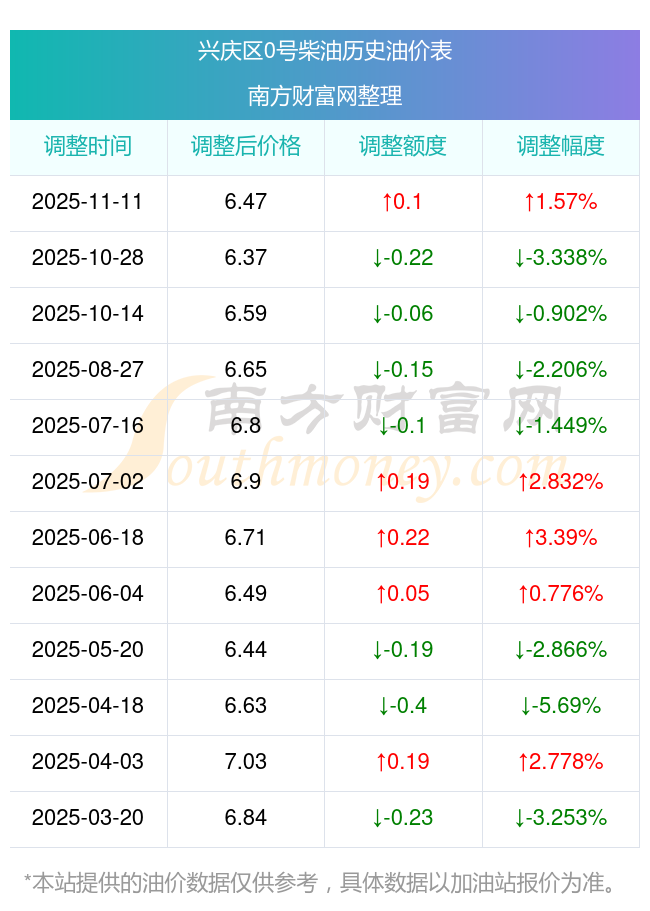 兴庆区0号柴油历史油价一览表
