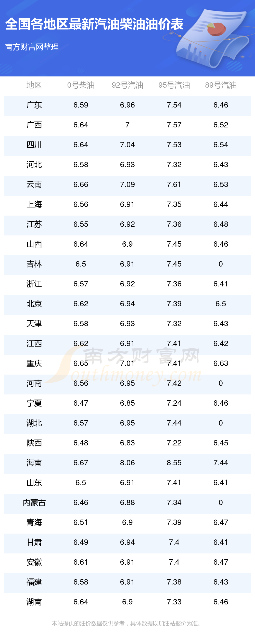 全国89号汽油平均价格为:7元每升,其中,最低为浙江,价格6.41元/升,最高为海南,价格7.44元/升。