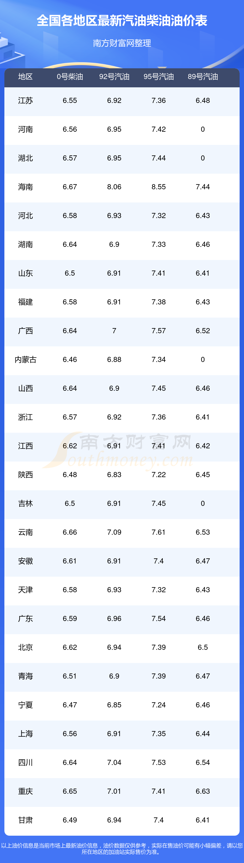本站提供的油价数据仅供参考,具体数据以加油站报价为准。