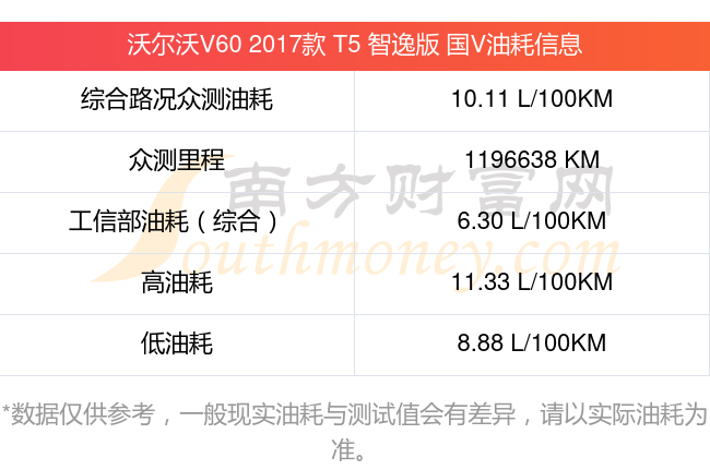 根据多位车主实测得出数据,该车型低油耗为8.88升/百公里,高油耗为11.33升/百公里,综合路况众测油耗为10.11升/百公里,工信部综合油耗为6.30升/百公里。