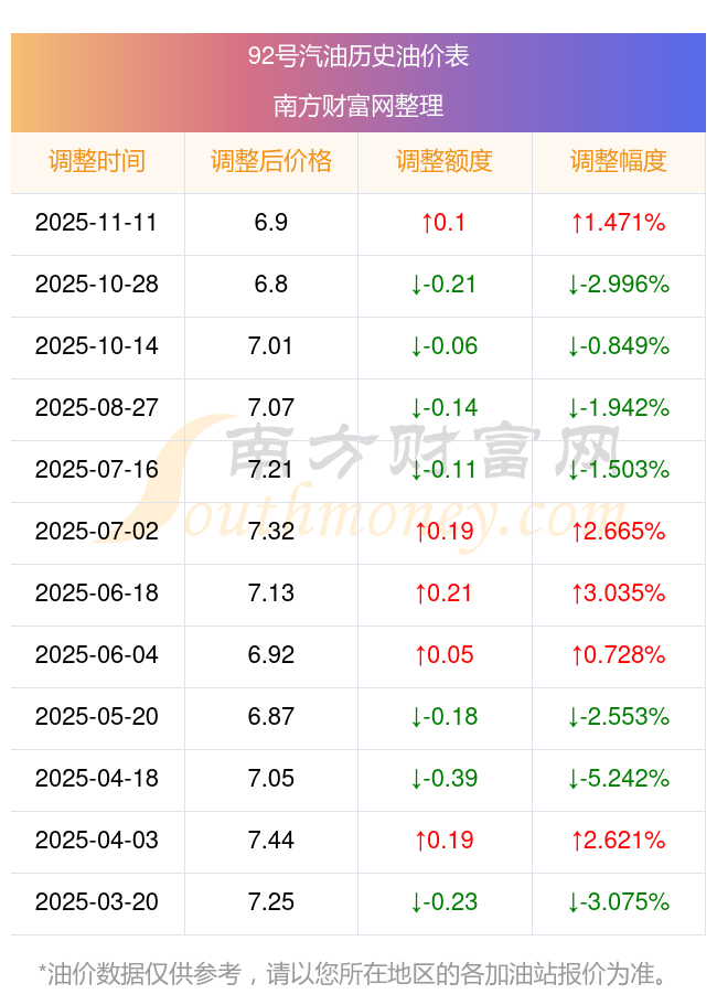 油价数据仅供参考,请以您所在地区的各加油站报价为准。